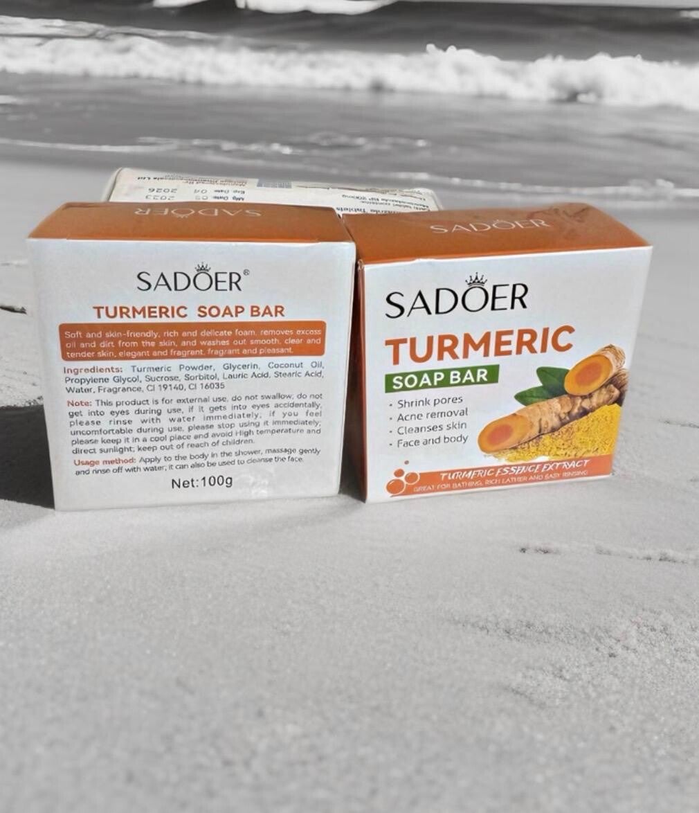 SADOER Turmeric Soap Bar Skincare Acne Removal Pore Cleaner Smoth Skin Nourshing WEIGHTS 100g